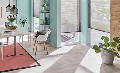 Plissee-Systeme gehören zu den vielseitigsten Innenbeschattungs-Systemen, da das Sortiment an Formen und Bedienungsarten für nahezu jede Anwendung die richtige Lösung bereithält. Plissee-Systeme haben ein geringes Gewicht, sind leicht zu bedienen und werden im Interesse der Wärmesteuerung nahe am Fenster montiert. Bei geöffneten Systemen sorgen die schmalen Lamellenpakete für maximale Sicht. Silent Gliss bietet eine breite Palette an unifarbenen, gemusterten und energieeffizienten Stoffen, die sich mit unterschiedlichsten Varianten des Systems kombinieren lassen.