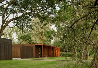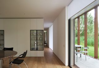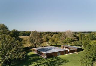 Das an ein Naturschutzgebiet angrenzende Haus ist als eine einzige skulpturale Form konzipiert, inspiriert von Palladios Villa rotunda und den Landschaftsskulpturen von Richard Serra. Die Gebäudehülle orientiert sich an den vier Himmelsrichtungen. Eine Aussenkolonnade und eine Loggia befinden sich an der Südost- und Südwestfassade.