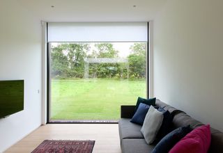 Das eingeschossige Gebäude ist von grossen, raumhohen Fenstern umgeben. Im Einklang mit den klaren Linien und dem minimalistischen Design sind die SG 4970 Rollos diskret in einer Nische installiert. Durch die Verwendung des weissen Stoffes Colorama 2 verbreiten die Rollos sanft das Licht in diesem bemerkenswerten und sympathischen Innenraum.
